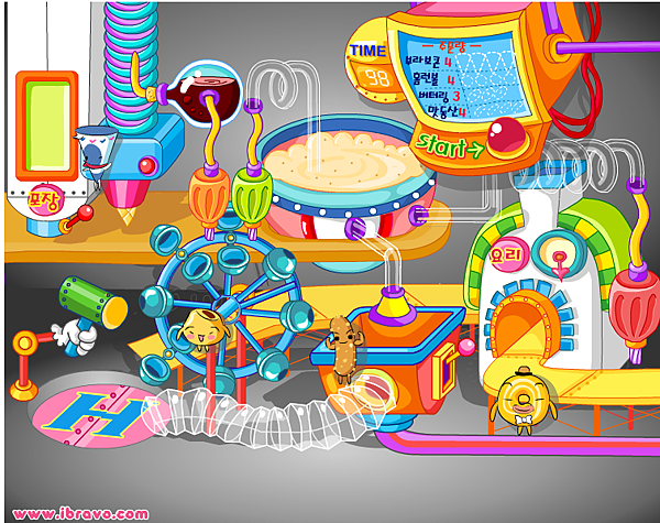 兩隻貓咪因為搶甜點而吵架,所以就決定在工廠自己做甜點,可以自己製作冰淇淋、泡芙、餅乾等,如果太久沒拿出來可是會被當成不良品敲碎,所以要控制好時間,一樣有時間限制,要在時間內完成規定的甜點數量,以前都會拼命練習,一定要在時間內完成,可以玩很久,只要在時間內完成全部項目,就可以在最後畫面看到兩隻貓咪滿足的看著甜點小山幸福的樣子,是個很療癒的遊戲。